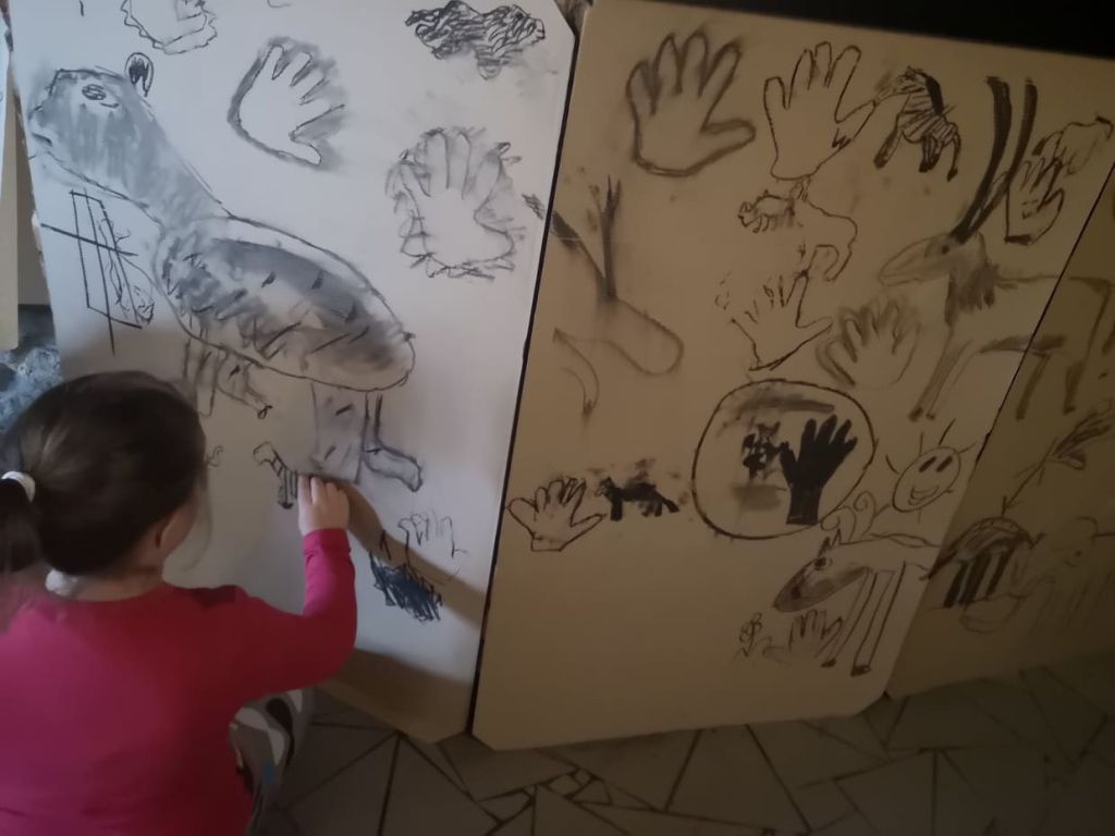 Prowadząca w „bajkowy” sposób opowiedziała dzieciom o pierwszych rysunkach, zwyczajach i zachowaniu naszych pra-przodków – m.in. z jakich materiałów wykonywali farby i pędzle, w jaki sposób oświetlali ciemne korytarze jaskiń i jak podpisywali swoje prace. W części plastycznej spotkania przedszkolaki wcieliły się w rolę jaskiniowców, by w muzealnej jaskini spróbować swoich sił w malarstwie naskalnym.