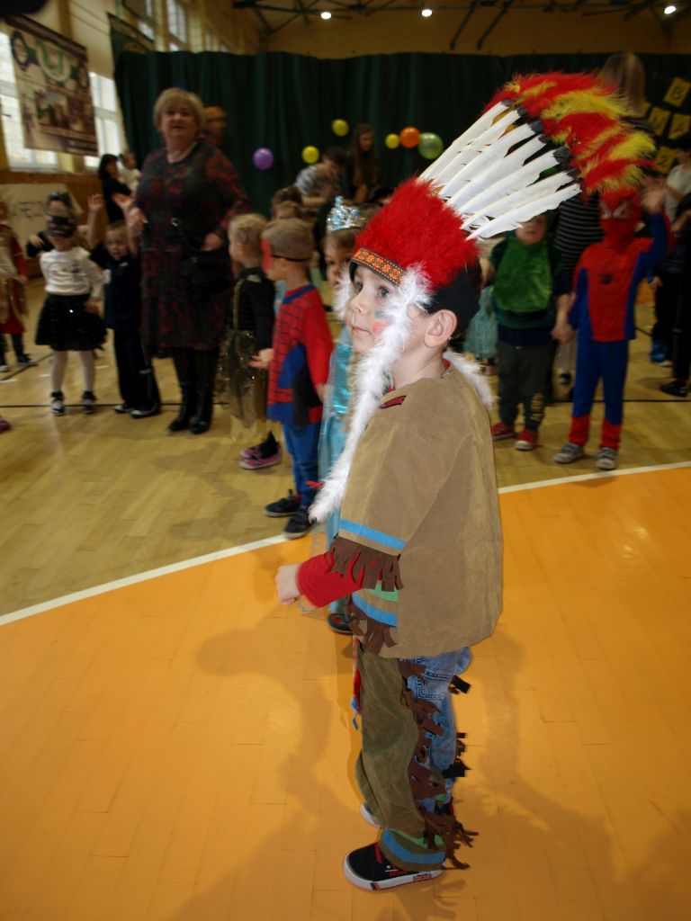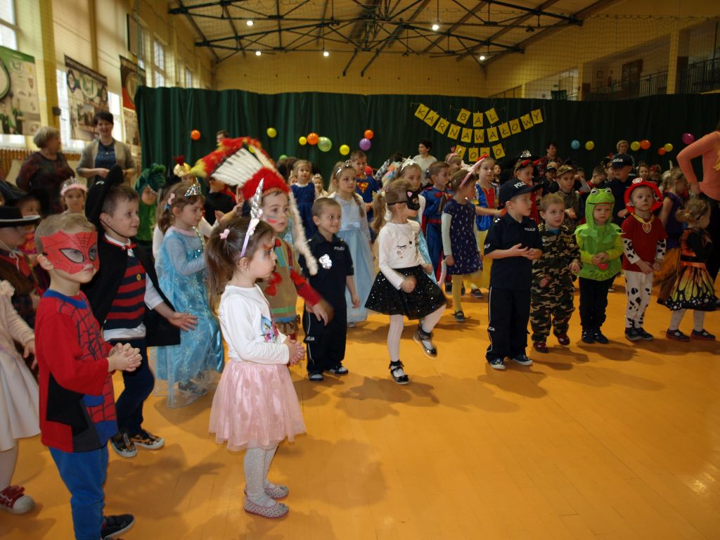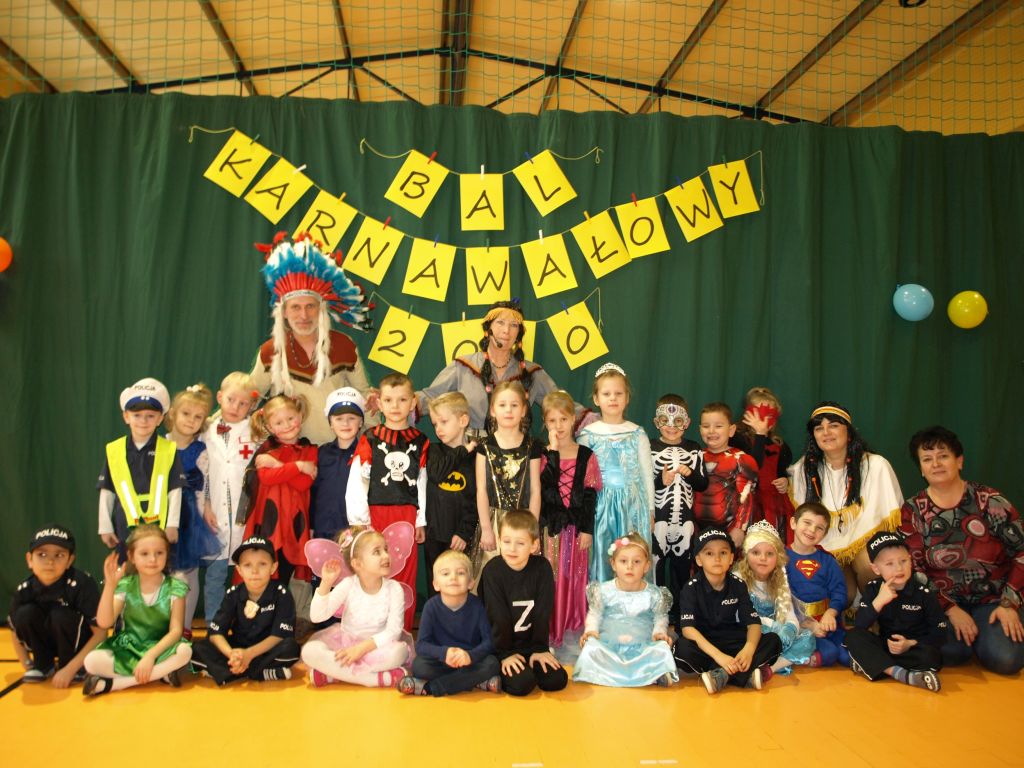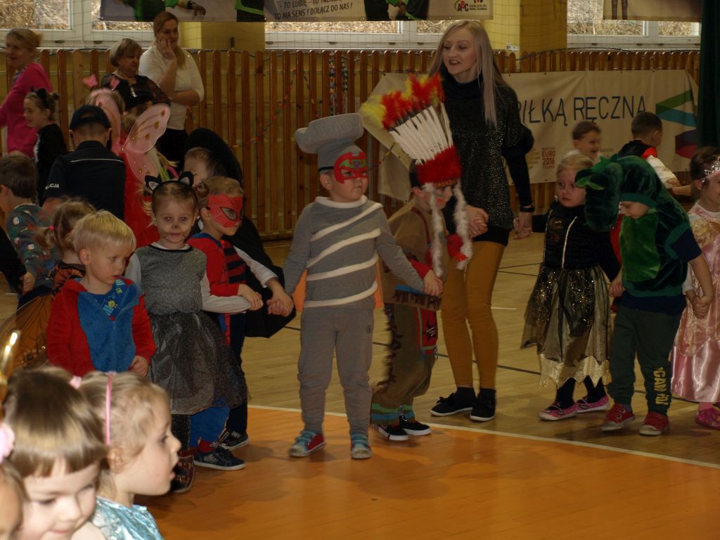 12 lutego w środę przedszkolaki spotkały się w hali sportowej na balu karnawałowym, który w tym roku poprowadzili animatorzy z Teatru Każdej Sztuki z Nowego Sącza. Dzieci wspaniale prezentowały się w strojach karnawałowych podczas tańców i zabaw przy muzyce, świetnie współpracowały z prowadzącymi naśladując ich ruchy, odpowiadając na pytania w czasie konkursu bajkowego. Podczas przerwy odpoczywały przy przygotowanym dla nich poczęstunku. Aktywność dzieci i płynąca z tego radość były miłym widokiem dla obecnych rodziców oraz nauczycielek.
