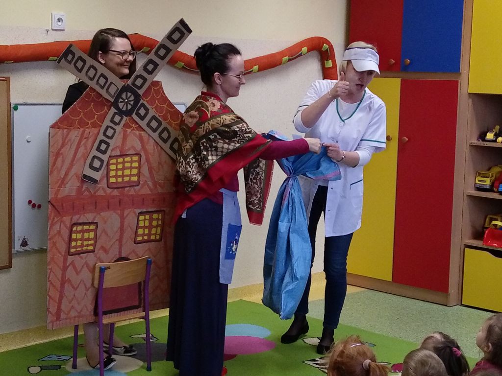 20 lutego nauczycielki przygotowały dla przedszkolaków teatrzyk w oparciu o utwór Marii Kownackiej "Pączki i faworki u babci Honorki", w którym wcieliły się w rolę babci Honorki, Florka, młynarza, pieska Azorka i wiatraka. Dzieci ucieszyły się z niespodzianki i nagrodziły występ dużymi brawami. Tego dnia wszyscy częstowali się pączkami.