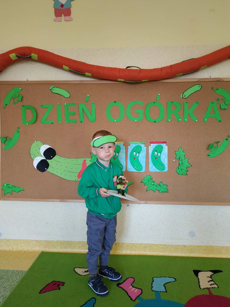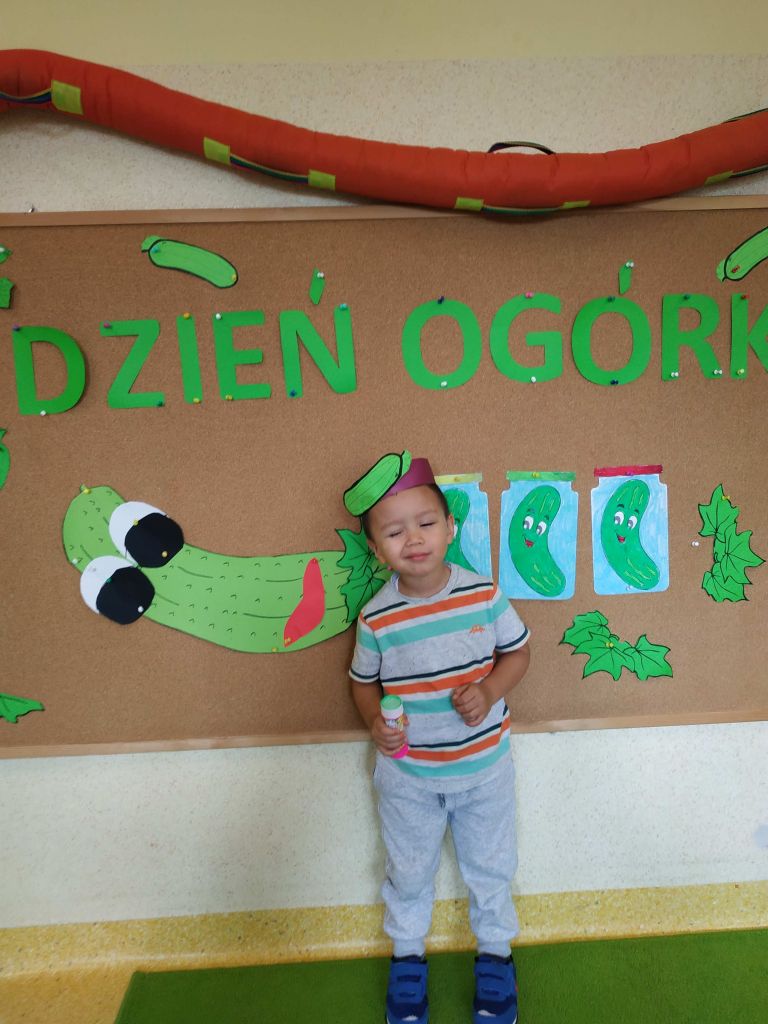 W piątek 9 października w grupie Krasnali kolejne warzywo znalazło się w centrum uwagi. Tym razem nasze zainteresowanie skupił ogórek. Tego dnia królował ubiór w kolorze zielonym. Z tej okazji również zostały przeprowadzone zajęcia, podczas których robiliśmy kanapki z ogórkiem, określaliśmy jego smak, zapach, kolor i kształt. Przedszkolaki wykazały się ogromną inwencją twórczą podczas lepienia ogórków z masy solnej. Nie mogło oczywiście zabraknąć zabawy przy piosence „Ogórek wąsaty”. Na zakończenie zajęć został rozstrzygnięty konkurs na pracę której motywem przewodnim był ogórek. Dziękujemy rodzicom za zaangażowanie i przygotowanie strojów.