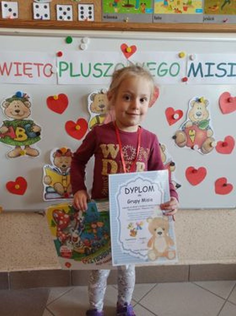 Również tego dnia nastąpiło rozstrzygnięcie przedszkolnego konkursu plastycznego „Miś pluszowy – moim przyjacielem” ogłoszonego przez Panie z grupy MISIE. Zadaniem każdej grupy wiekowej było wykonanie jednej wspólnej pracy plastycznej oraz ułożenie wierszyka o misiu. Prace były bardzo pomysłowe i pracochłonne, a Panie w poszczególnych grupach wykazały się kunsztem językowym i z pomocą przedszkolaków ułożyły ciekawe misiowe wierszyki. W konkursie nie wyłoniono zwycięzcy. Wszystkie prace były ciekawe, tworzone z sercem i zasłużyły na nagrody. Każda grupa otrzymała pamiątkowy dyplom, grę oraz „słodkie co nieco”. Bardzo dziękujemy naszym przedszkolakom i koleżankom za zaangażowanie i udział w konkursie.