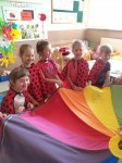 10 czerwca obchodziliśmy w naszej grupie „Dzień Biedronki”. Dzieci już od rana miały świetny humor. Ubrane w kropkowe pelerynki brały udział w zabawach z chustą animacyjną, tańczyły, śpiewały piosenki, wysłuchały wiersza J. Brzechwy „Żuk” i obejrzały filmik edukacyjny na temat biedronki.