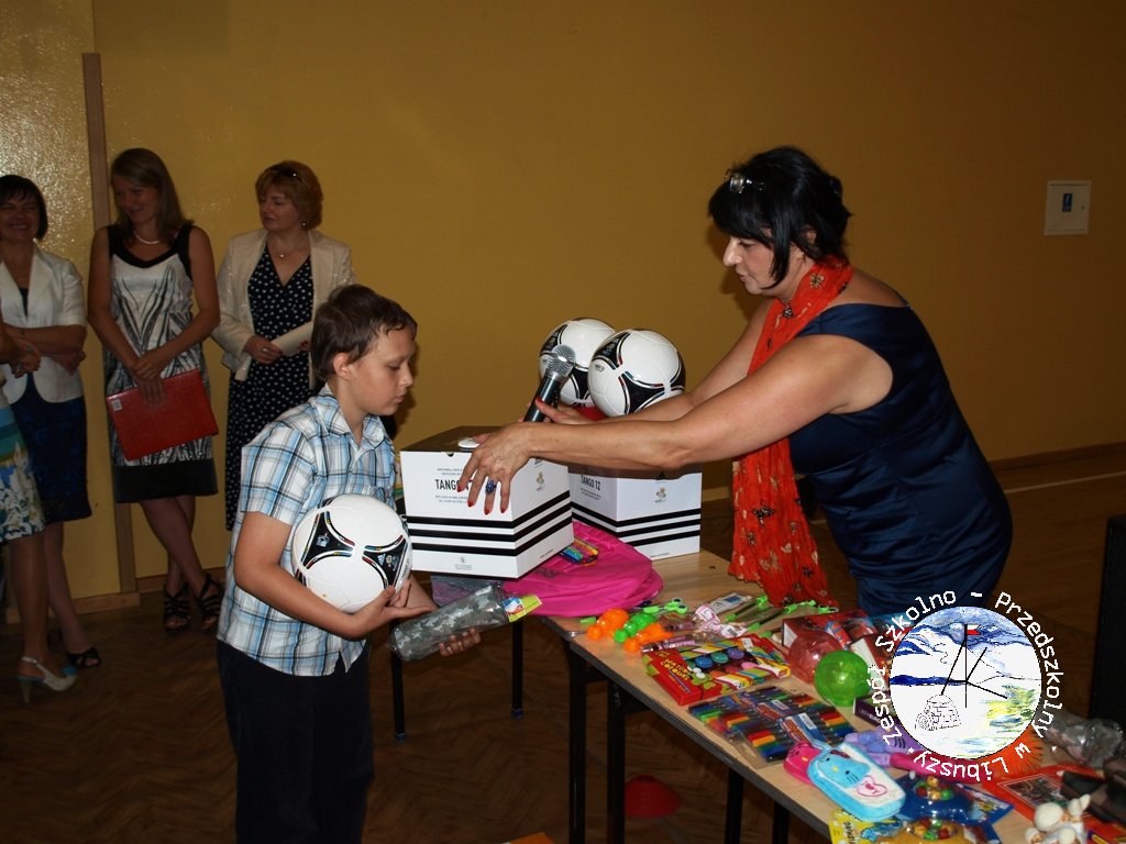 29 czerwca w sali gimnastycznej naszej szkoły odbyło się uroczyste zakończenie roku szkolnego 2011/2012r. Wszystkim uczniom, którzy uzyskali wysokie wyniki w nauce oraz wzorową frekwencję - zostały wręczone nagrody książkowe i dyplomy, które wręczał dyrektor szkoły mgr Aleksander Kalisz. Zostały również wręczone statuetki oraz nagrody rzeczowe dla wyróżniających się sportowców oraz najaktywniejszych dzieci zapisanych w Szkolnej Kasie Oszczędnościowej. Nagrody książkowe ufundowała Rada Rodziców Zespołu Szkolno Przedszkolnego im. prof. Aleksandra Kosiby w Libuszy.
