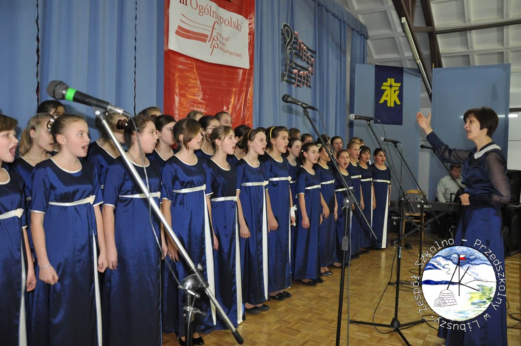 9 listopada chór w pełnym ekwipunku wyjechał na dwa dni do Krakowa. Przegląd odbywał się w Parafii Matki Bożej Częstochowskiej w Nowej Hucie a patronował mu Ks. Kardynał S. Dziwisz oraz Kurator Oświaty. Podobnie jak w latach ubiegłych jury wybrało do wykonania w konkursie dwie pieśni spośród pięciu przygotowanych. Były to utwory” „Oj ziemio” i „Niepodległa, niepokorna”. Występ wypadł bardzo dobrze, wszyscy byli zadowoleni z opiekunką na czele. W piątkowych przesłuchaniach woj. małopolskiego wzięło udział aż 69 wykonawców. O wynikach dowiedzieliśmy późno wieczorem już na noclegu. Ku olbrzymiej radości wszystkich chórzystów nasz chór zakwalifikował się do finału ogólnopolskiego jako jeden z 12 reprezentantów woj. małopolskiego. Tak więc na następny dzień czekał nas ponowny bardzo trudny występ. W sobotę wróciliśmy znowu do miejsca występów. Tym razem jury wybrało dla nas pieśń „Gdy na Anioł Pański” i ponownie nasz najtrudniejszy utwór „Oj ziemio”. I tym razem udało się pokonać zmęczenie i tremę. Nasz występ bardzo się podobał, usłyszeliśmy wiele ciepłych słów od organizatorów. Przewodniczący jury prof. Marchewczyk poprosił nas o zaśpiewanie pieśni podczas Mszy Św. Organizatorzy zapewnili wszystkim wspaniały poczęstunek; drożdżówki, pizze oraz napoje. Po Mszy Św. ogłoszono listę wykonawców zakwalifikowanych do Koncertu Laureatów. Nasz Chór i tym razem znalazł się w ich gronie. Byliśmy naprawdę szczęśliwi choć już bardzo zmęczeni. Występ podczas Koncertu Laureatów wypadł świetnie, chór otrzymał nagrody rzeczowe oraz gromkie brawa od słuchaczy. Duże wrażenie zrobiła liczba chórzystów oraz piękne stroje. Zaraz po występie wyjechaliśmy do domu. To były dwa bardzo długie, pełne niezapomnianych wrażeń dni.
