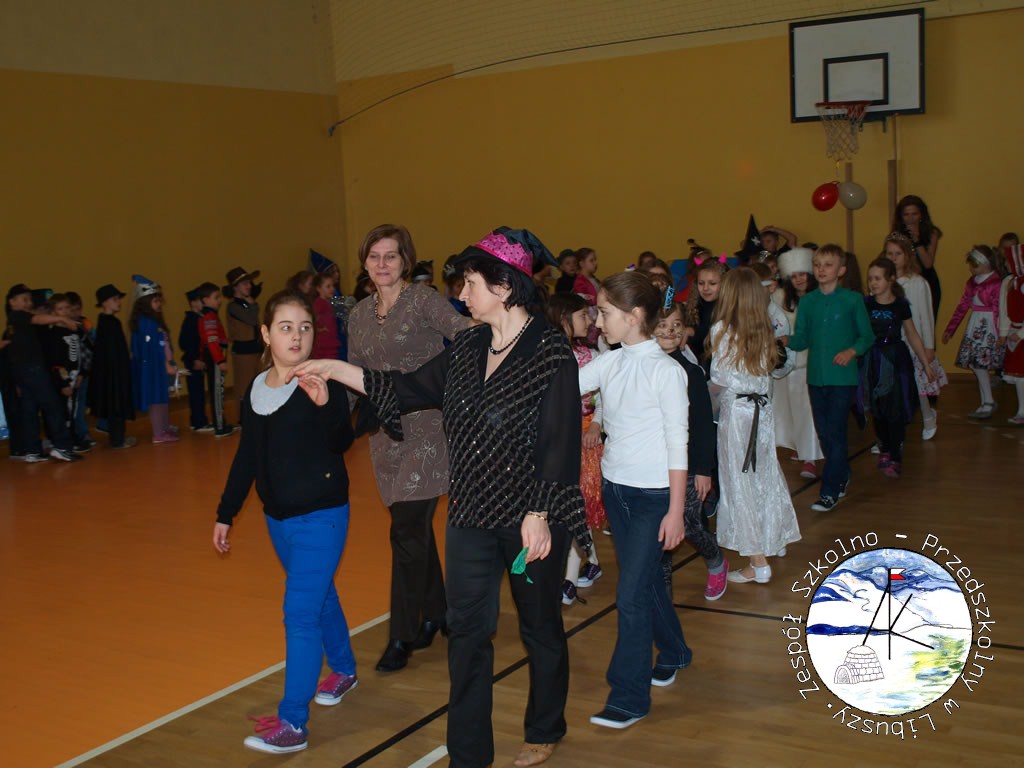 4 lutego 2013 r. odbył się w naszej szkole bal karnawałowy dla uczniów klas młodszych. Każdy przygotował na tę okazję piękny strój, makijaż, fryzurę. Kogo tu nie było! Nie sposób wymienić wszystkich postaci za które przebrały się dzieci. Zabawa odbywała się na hali sportowej. Do tańca przygrywał i bawił wszystkich trzyosobowy zespół z energiczną prowadzącą.