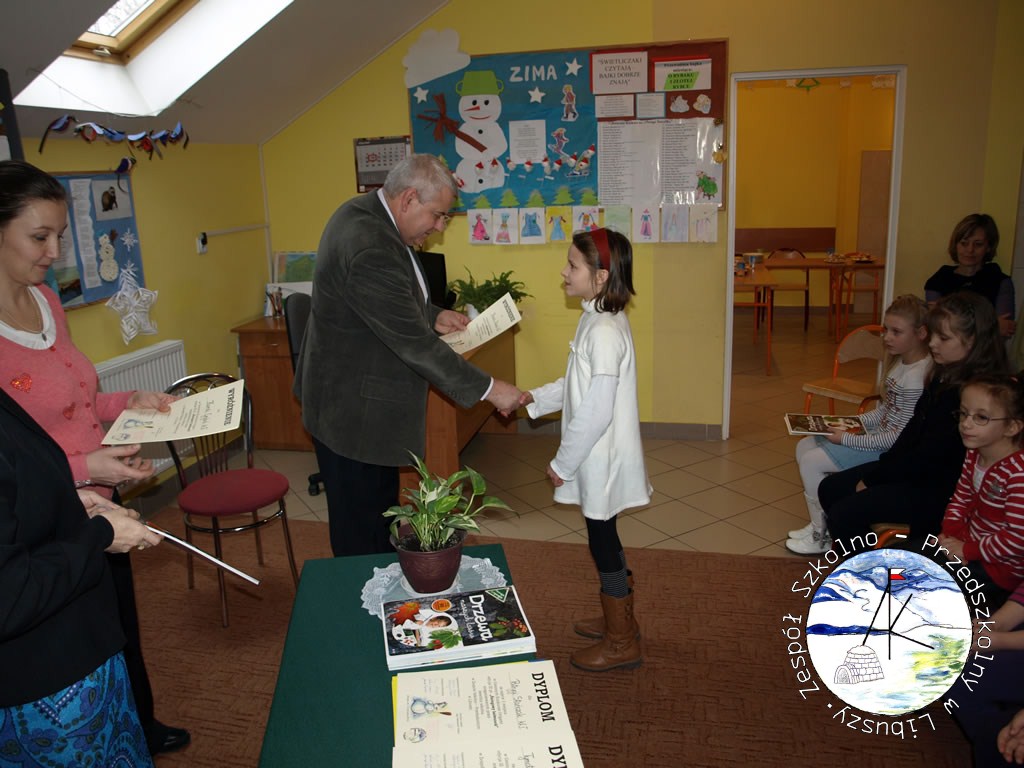 Wszyscy laureaci otrzymali dyplomy i nagrody książkowe, które wręczali: Dyrektor szkoły p.Aleksander Kalisz i wychowawcy świetlicy szkolnej p.Magdalena Stelmach i p.Katarzyna Pabisz. Nagrody w konkursie ufundowała Burmistrz Biecza p.Urszula Niemiec.