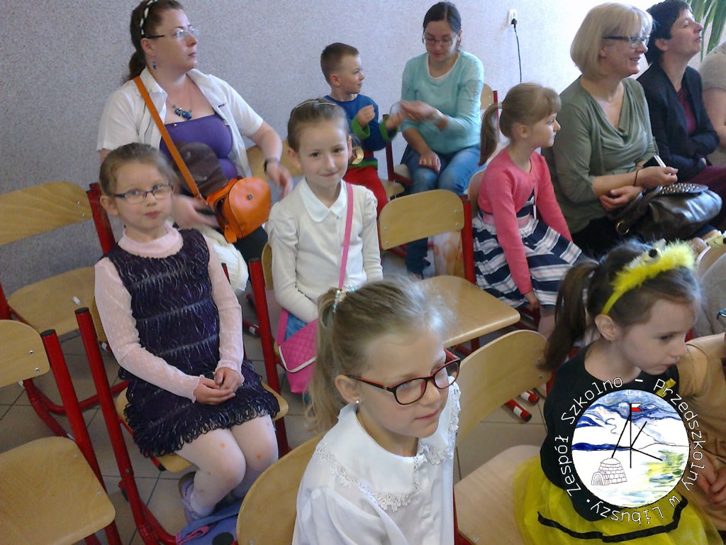 Dnia 21 maja 2014r. w Zespole Szkolno-Przedszkolnym w Binarowej odbył się Gminny Konkurs Plastyczno-Recytatorski ,,Wiosna wokół nas". Celem tego konkursu w którym brały udział i nasze przedszkolaki było promowanie dziecięcych talentów oraz poznawanie utworów literackich o tematyce wiosennej. Warunkiem uczestnictwa było wykonanie pracy plastycznej do wiersza, jak również jego recytacja. Z grupy ,,Leśnych Duszków" wzięły udział dwie dziewczynki tj. Aleksandra Kapusta, która zilustrowała wiersz M. Walczak ,,Kolacja boćka", natomiast Emilia Stawiarska prezentowała go przed szerokim gronem dzieci z różnych przedszkoli i komisją konkursową. Wszystkim najbardziej spodobała się recytacja i interpretacja wiersza właśnie w wykonaniu Emilki za który zdobyła 1 miejsce. Bardzo się cieszymy i gratulujemy zwyciężczyni. Życzymy dalszych sukcesów dziewczynkom.