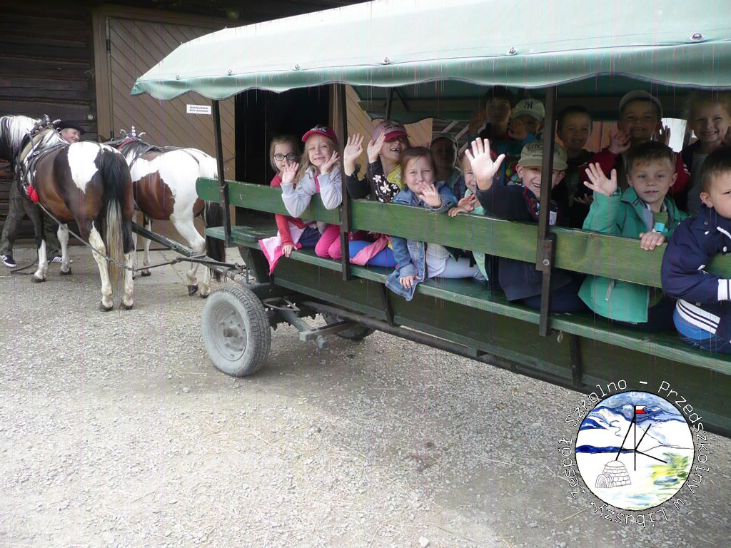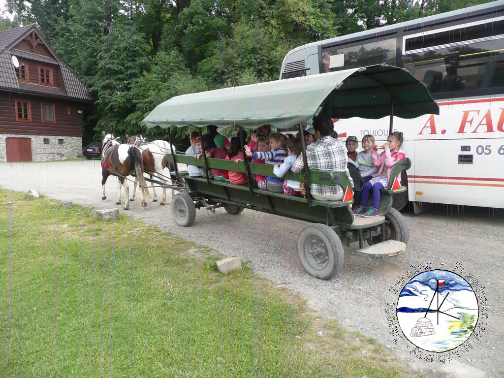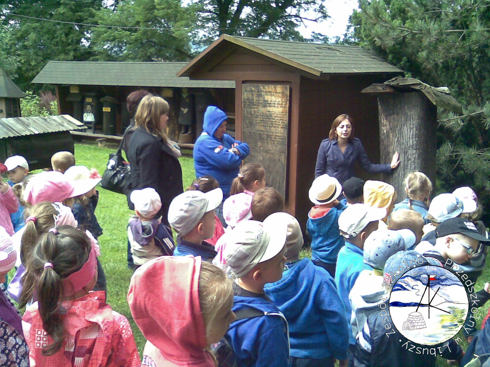 W dniu 16. 06. 2014r. wszystkie grupy przedszkolne pojechały na wycieczkę do Muzeum Pszczelarstwa w Stróżach. Dzieci zwiedziły Skansen w którym zgromadzone były dawne sprzęty związane z pracą pszczelarza. Wzbogaciły wiedzę na temat życia i rozmnażania się pszczół oraz w jaki sposób powstaje miód. Duże wrażenie zrobiła na wszystkich zgromadzona tam kolekcja starodawnych i niezwykle oryginalnych uli. Ciekawym i miłym doświadczeniem był również dla wszystkich przejazd bryczką, a dla chętnych dodatkowo przejażdżka na kucyku. W przerwie pomiędzy przygotowanymi atrakcjami poszczególne grupy przedszkolne bawiły się na tamtejszym placu zabaw lub chodziły oglądać mini zoo, gdzie były: pawie, kozy, strusie, a nawet tygodniowy źrebaczek w stajni. Niektórzy zakupili pamiątki i różne słodkości zrobione na bazie miodu. Dzięki sprzyjającej aurze wycieczka udała się i na pewno pozostawiła niezapomniane wrażenia.