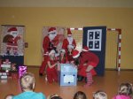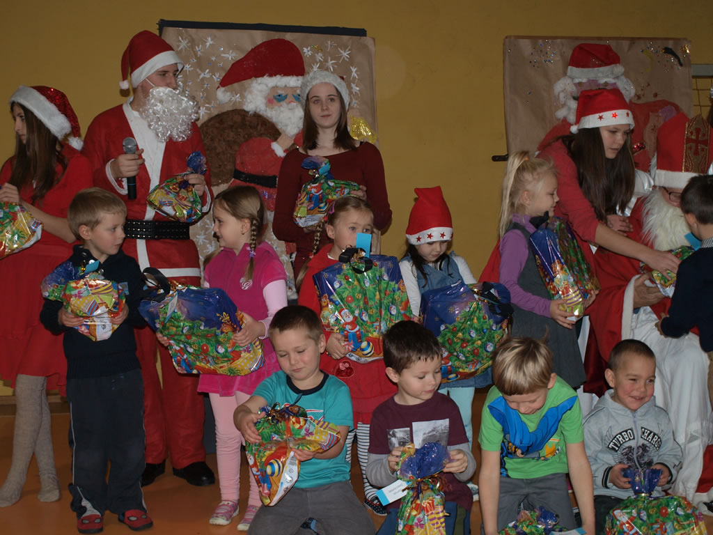 W dniu 05.12.2014r. wszystkie przedszkolaki zostały obdarowane prezentami od przybyłego do naszej placówki Św. Mikołaja. Po krótkim powitaniu przybyłego gościa przez kilkoro dzieci z przedszkola z grypy ,,Leśnych Duszków" wierszem i piosenką ,,Wszystkie dzieci Mikołaja kochają…" zaprezentowała się grupa gimnazjalistów ze Szkolnego Koła Caritas, która przygotowała montaż słowno- muzyczny. Kiedy nadszedł ten upragniony i długo oczekiwany moment przez wszystkie dzieci i Św. Mikołaj zaczął rozdawać prezenty, radości, wzruszeń i okrzyków radości nie było końca. Zaprezentowane zdjęcia są upamiętnieniem tej wyjątkowej dla przedszkolaków chwili.