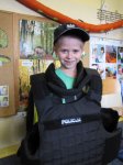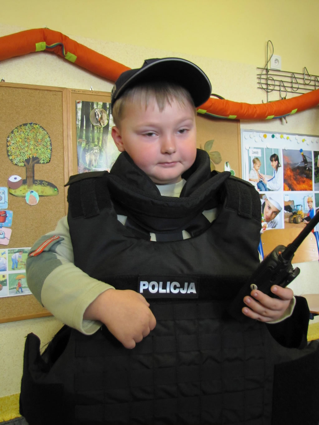 Dnia 29.10.2015 r. do naszego przedszkola przybili policjanci z Komisariatu Policji w Bieczu. Przedszkolaki w trakcie spotkania zapoznały się z pracą policjanta, dowiedziały się również jak bezpiecznie poruszać się po drodze jak i poza nią. Poznały także wybrane znaki drogowe oraz ich oznaczenia symboliczne. Największym zainteresowaniem wśród dzieci okazał się strój policjanta oraz elementy sprzętu policyjnego np. kajdanki, odznaka… Przedszkolaki czynnie uczestniczyły w spotkaniu, zadawały pytania, dzieliły się swoimi spostrzeżeniami i doświadczeniami. W podziękowaniu za ciekawe spotkanie, przybliżenie i usystematyzowanie zasad bezpieczeństwa dotyczącego ruchu drogowego oraz bezpiecznej zabawy dzieci wręczyły podziękowanie.