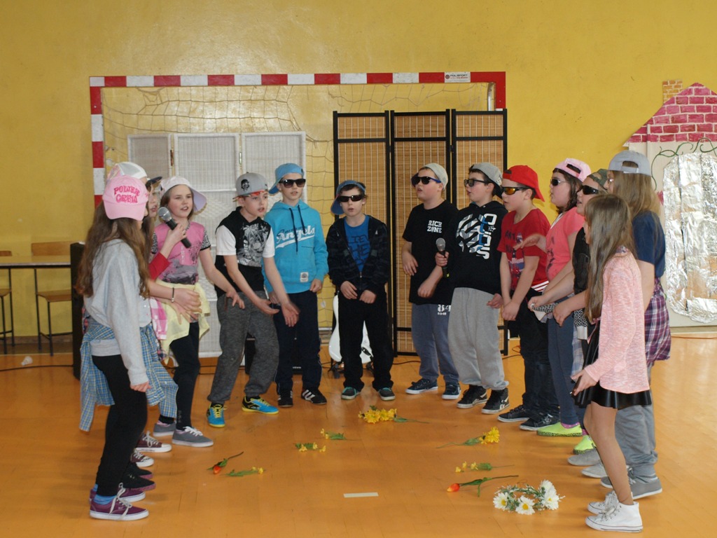 Jak co roku powitaliśmy wiosnę w wyjątkowy sposób. Konkurs międzyklasowy zamienił się w prawdziwe szaleństwo pomysłów. Było rapowanie i wierszowanie. Wesele na Olimpie zakończyło się w szpitalu, gdzie odbyła się profesjonalna operacja pod wodzą doktora Killera. Potem zrobiło się rock’n’rollowo i kabaretowo za sprawą krasnali i Jasia niezdary. Gdy pomalowaliśmy świat na żółto i na niebiesko, z tajną misją przybyły pingwiny z Madagaskaru wraz ze wspaniałomyślnym, przystojnym, towarzyskim, zwariowanym oraz mającym nieograniczone pokłady energii królem Julianem. O tym, że nasi uczniowie kochają szkołę, świadczy fakt, że trzy klasy wybrały ją jako temat swoich występów.