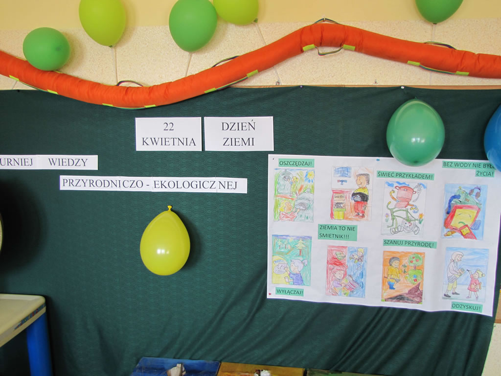 22.IV to Dzień Ziemi obchodzony na całym świecie. Dzieci z naszego przedszkola również przyłączyły się do obchodów poprzez udział w tygodniu ekologicznym. Poznały konieczność ochrony środowiska, oszczędzania wody, energii, segregowania śmieci . Pierwszego dnia przedszkolaki z wszystkich grup wykonały prace plastyczne z surowców wtórnych, które zaprezentowały w galerii przedszkolnej . W Dniu Ziemi wszystkie dzieci wzięły udział w Quizie ekologicznym przygotowanym przez p. Magdalenę Stelmach prezentując swoje wiadomości zdobyte na zajęciach w grupie. Na koniec w obecności wszystkich nauczycielek złożyły przyrzeczenie Małego Ekologa , że będą dbać o przyrodę. Podsumowaniem całego dnia było wspólne obejrzenie bajki pt. „Dobre rady na odpady czyli ekologiczny Czerwony Kapturek”. Przedszkolaki za wspaniałą pracę i wiedzę otrzymały dyplomy oraz odznaki. Mamy nadzieję że takie akcje pozostaną w pamięci dzieci i uzmysłowią im że o naszą ziemię trzeba dbać niezależnie od tego ile mamy lat.