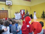 We wtorek 6 grudnia odwiedził nasze przedszkole wyjątkowy gość – Święty Mikołaj. Na spotkanie z nim przygotowywaliśmy się już wcześniej poznając jego historię i dobroć jaką okazywał innym obdarowując ich prezentami. Przed przyjściem Mikołaja dzieci obejrzały przedstawienie przygotowane przez koleżanki i kolegów ze starszych klas Gimnazjum. Po wkroczeniu na salę Mikołaj powitany został radośnie piosenką. Następnie nastąpił długo wyczekiwany moment rozdawania prezentów uwieczniony pamiątkowymi zdjęciami. Dzieci bardzo ucieszyły się z wizyty tak wspaniałego gościa i otrzymanych podarunków. Większość z nich zaraz po pożegnaniu Mikołaja przystąpiła do ich rozpakowywania.