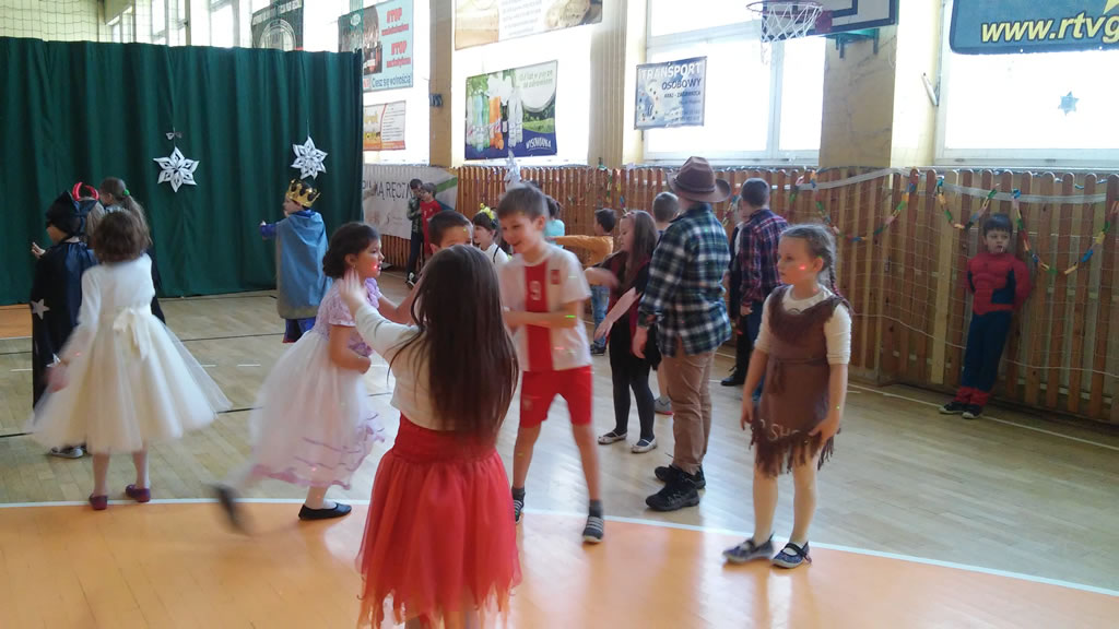 W poniedziałek 16 stycznia 2017 r. w naszej szkole odbyła się zabawa karnawałowa dla dzieci z klas I-III. W ten wyjątkowy dzień dzieci przebrały się w piękne stroje. Wśród tańczących można było zobaczyć wiele „Księżniczek”, „Sportowców”, „Policjantów”...aż trudno wymienić wszystkie stroje bo były naprawdę piękne! Do wesołej zabawy przygrywał zespół, śpiewała wokalistka, która doskonale prowadziła zabawę. Dzieci chętnie tańczyły i śpiewały w rytm znanych i lubianych przebojów. Nie zabrakło rytmicznej „macareny” i wesołych „kaczuszek”. W przerwie rodzice przygotowali dzieciom pyszny poczęstunek. Karnawał to piękny czas!