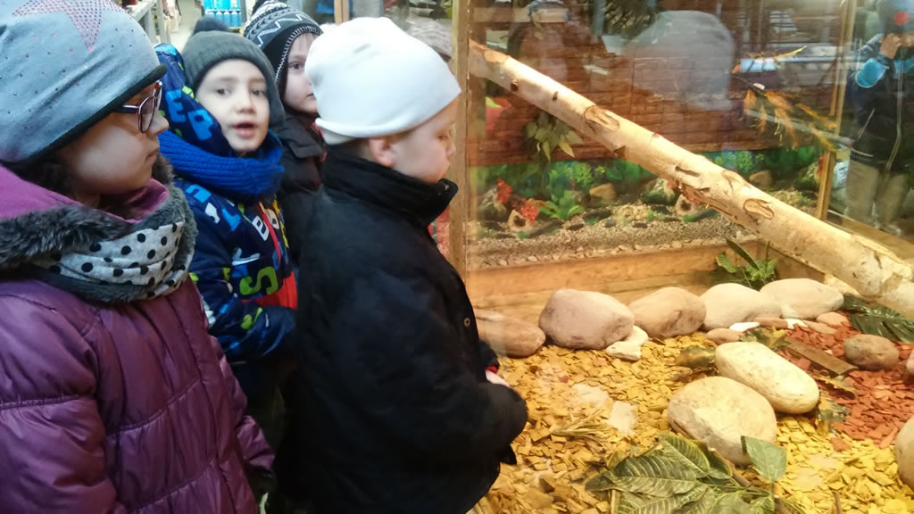 23 lutego uczniowie klas I – III uczestniczyli w niecodziennych zajęciach pod nazwą „Zielona godzina”, zorganizowanych przez gorlicki sklep „Majster”. Dzieci mogły z bliska zobaczyć różnorodne gatunki zwierząt umieszczone w terrariach, klatkach, akwariach oraz dowiedzieć się wielu ciekawostek o ich życiu i zwyczajach. Ogromną frajdę sprawił im bezpośredni kontakt z niektórymi zwierzątkami. Dzieciaki miały możliwość pogłaskać królika, żółwia, a nawet węża. O mieszkańcach mini zoo w ciekawy sposób opowiadał pracownik działu zoologicznego. Dzieci reagowały żywiołowo i zadawały mnóstwo pytań. Dzieliły się również z innymi swoją wiedzą i doświadczeniem.