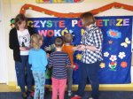 21 kwietnia br. wszystkie grupy przedszkolne spotkały się na wspólnej uroczystości pod hasłem „Czyste powietrze wokół nas” prowadzonym prze panie Otylię Kosiba – Kędzior i Anetę Jantas. Celem spotkania było kształtowanie świadomości ekologicznej i idei ochrony środowiska oraz zwiększenie wrażliwości dzieci na szkodliwość dymu papierosowego.