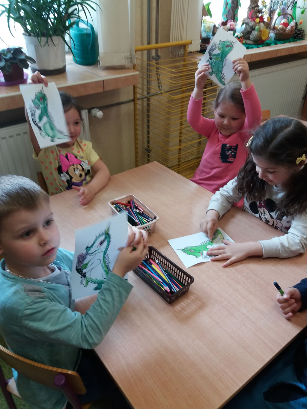 Wszystkie dzieci odśpiewały piosenkę o Dinusiu, bawiły się przy muzyce oraz rozwiązywały quiz ekologiczny, gdzie mogły wykazać się zdobytą wiedzą. Na zakończenie przedszkolaki zapoznały się z „Kodeksem Małego Ekologa”, który wspólnie zatwierdziły oraz otrzymały sylwetę Dinusia do kolorowania i baloniki.