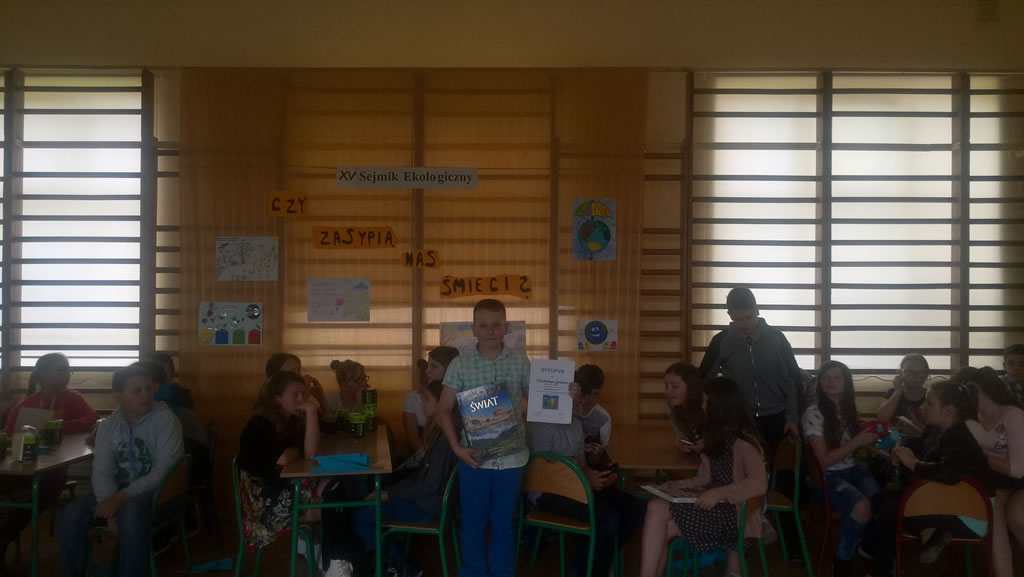 Podsumowaniem sejmiku było rozstrzygnięcie konkursu, w którym uczniowie mieli za zadanie przygotować prezentację multimedialną pt. "Śmieci mniej, Ziemi lżej". Konstanty Galant uczeń kl. Va zdobył I miejsce w tym gminnym konkursie. Gratulujemy.