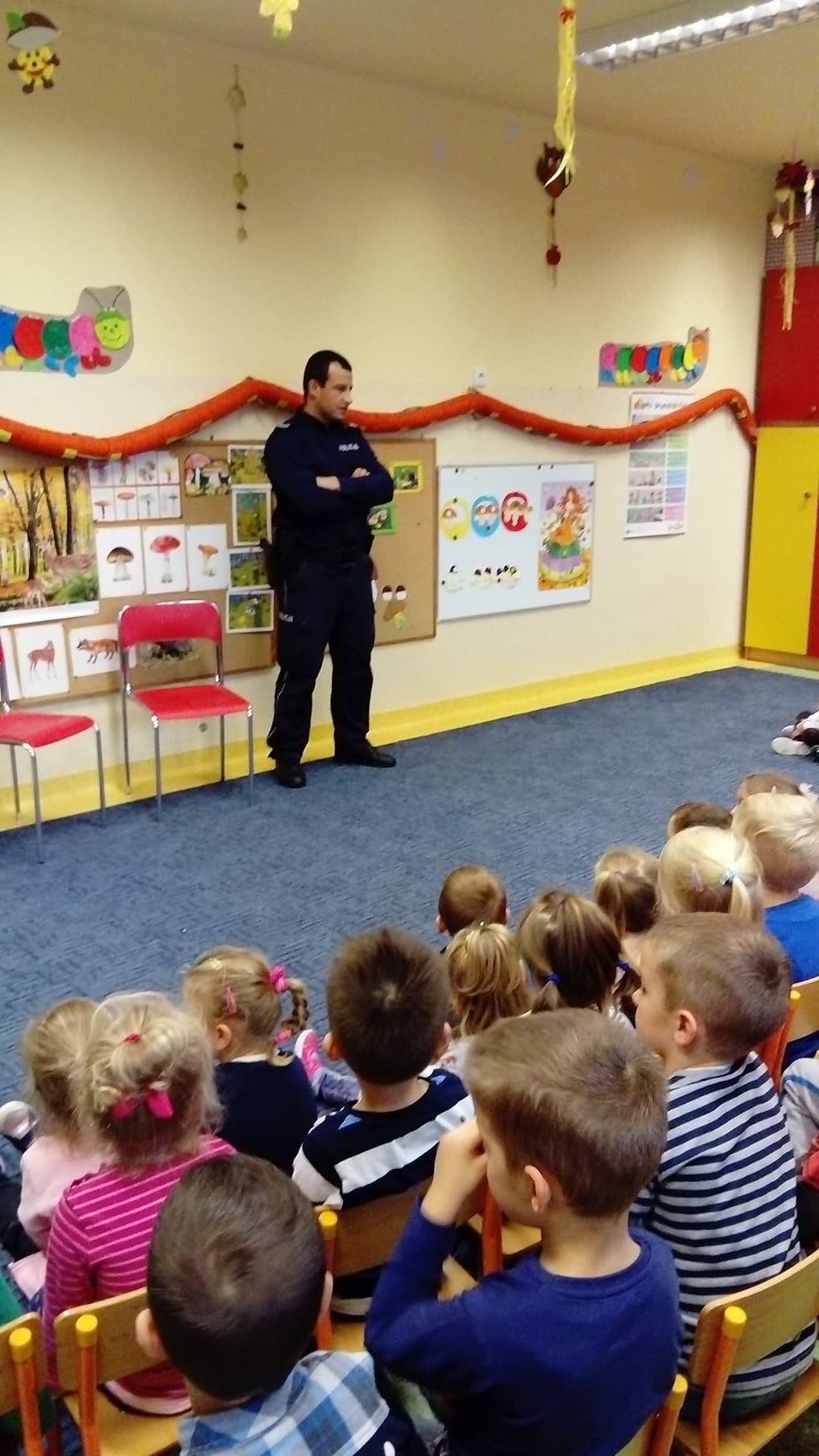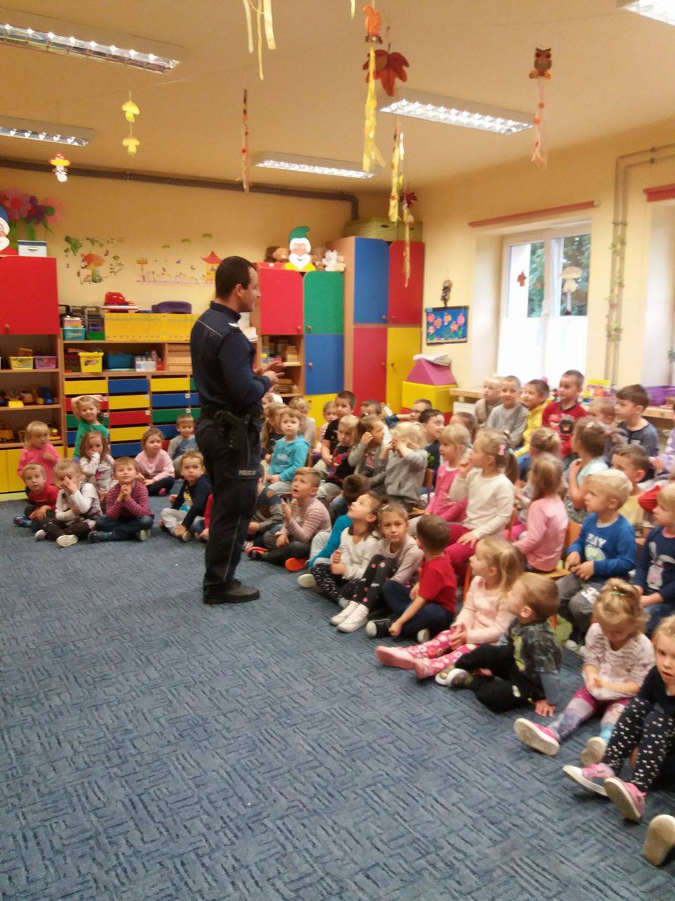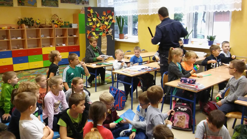 W październiku przedszkolaki i uczniowie klas I-III uczestniczyli w spotkaniu z policjantem Komisariatu Policji w Bieczu - sierż. sztab. Krzysztofem Gucwą. Tematem pogadanki była „Bezpieczna droga do szkoły”. Funkcjonariusz przypomniał zasady bezpiecznego poruszania się po drodze, zachęcał również do wyposażenia ubiorów i plecaków w elementy odblaskowe. Przestrzegał najmłodszych przed zabawami w pobliżu jezdni. Podczas spotkania uczniowie dowiedzieli się, jak reagować w sytuacji innych zagrożeń, m.in. kiedy zauważą pożar czy wypadek. Przypomniał numery alarmowe. Gość zwrócił uwagę na niebezpieczeństwa, jakie mogą czyhać na dzieci w kontaktach z obcymi, omówił sposoby unikania ich. Duże zainteresowanie dzieci wzbudził mundur policjanta oraz akcesoria potrzebne mu do pracy.