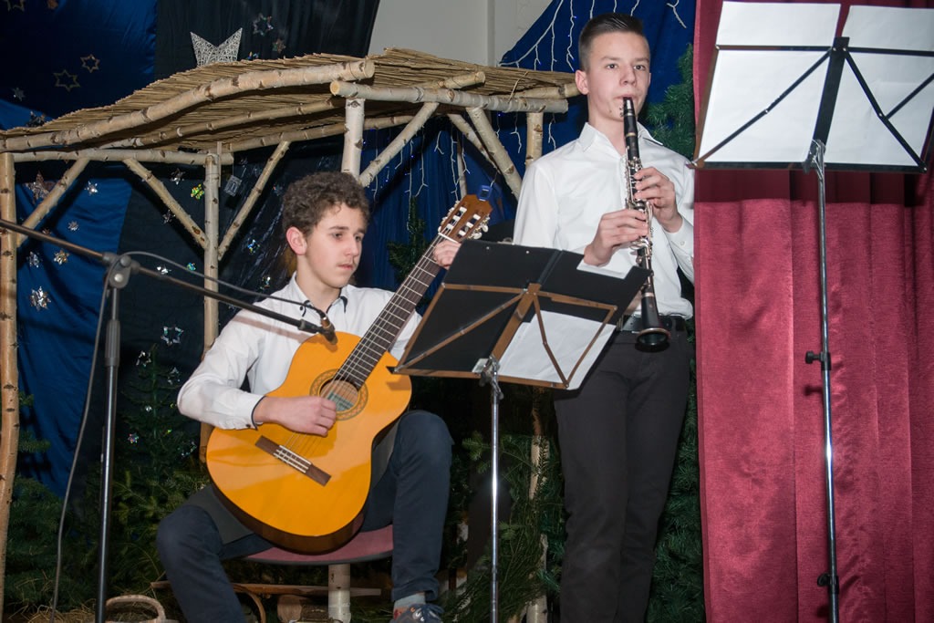 Uczniowie popisali się nie tylko zdolnościami aktorskimi, ale także śpiewem i grą na instrumentach. Całość ożywiły brawurowo odtańczone tańce - „ Krakowiak” i „ Zbójnicki”. Przedstawienie zakończył koncert kolęd w wykonaniu szkolnego chóru „Regnum Sonoris”. Na stoisku świątecznym można było nabyć tradycyjne pierniczki oraz niepowtarzalne ozdoby i pamiątki wykonane przez uczniów i nauczycieli. Dochód ze stoiska będzie przeznaczony na renowację grobowca Patrona, prof. Aleksandra Kosiby. Rodzice uczniów z zaangażowaniem włączyli się w przygotowanie barwnych strojów oraz scenografii. Warto podkreślić, że większość z nich 25 lat temu występowała na tej samej scenie. Wyrosło nam już drugie pokolenie „ jasełkowiczów”… Występ młodocianych aktorów zaszczycili mili goście: p. Poseł Barbara Bartuś, Burmistrz Biecza p. Mirosław Wędrychowicz, Wiceburmistrz p. Grzegorz Nosal, Dyrektor ZOJ p. Renata Gołębiowska, Ks. Proboszcz Stanisław Dębiak, Ks. Michał Dusza, Dyrektor Mi GBP w Bieczu p. Elżbieta Knapik, Sołtys i Radna PG p. Iwona Tumidajewicz. Rodzice i dziadkowie nieraz ukradkiem otarli łezkę… A co będzie za rok? Oby XXVII Jasełka Libuskie był jeszcze ładniejsze, oby przyniosły jeszcze więcej radości i pięknych wzruszeń.