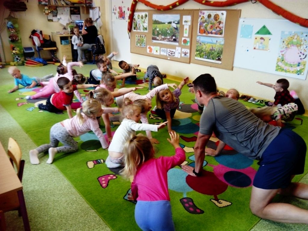W dniu 9.05.2018 roku przedszkolaki z grupy „Krasnale” miały okazję uczestniczyć w niecodziennej lekcji gimnastyki. Na prośbę wychowawcy Pani Otylii Kosiby – Kędzior przedszkole odwiedził nauczyciel wychowania fizycznego ze Szkoły Podstawowej Nr 1 w Bieczu Pan Marek Kędzior, który prezentując dzieciom ciekawe ćwiczenia i zabawy ogólnorozwojowe zapoznał je z zasadami sportowej rozgrzewki, kolejnością wykonywania ćwiczeń czy niezwykle ważną rolą jaką aktywność fizyczna pełni w naszym życiu. Zajęcia prowadzone były w przyjaznej atmosferze, a przedszkolaki ćwiczyły bardzo chętnie. Po zajęciach każdy z uczestników otrzymał słodki drobiazg.