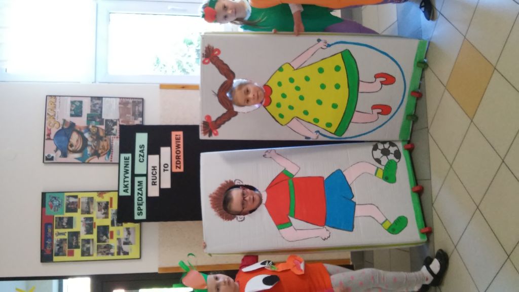 Nie zabrakło aktywności ruchowej, która stanowi podstawę piramidy. Podczas realizacji zadań wynikających z Projektu uczniowie dzielili się swoją wiedzą i umiejętnościami z kolegami i koleżankami innych klas oraz rodzicami. Efekty swojej pracy zamieścili na gazetkach i wystawach. Przygotowany został test „Czy prawidłowo się odżywiasz i jesteś aktywny?”, ulotki promujące zdrowe odżywianie, fotobudka aktywności ruchowej i wiele innych działań, które mamy nadzieję wpłyną na poprawę zdrowia uczniów poprzez ich świadome wybory żywieniowe oraz zachęcą do podejmowania różnych form ruchu.