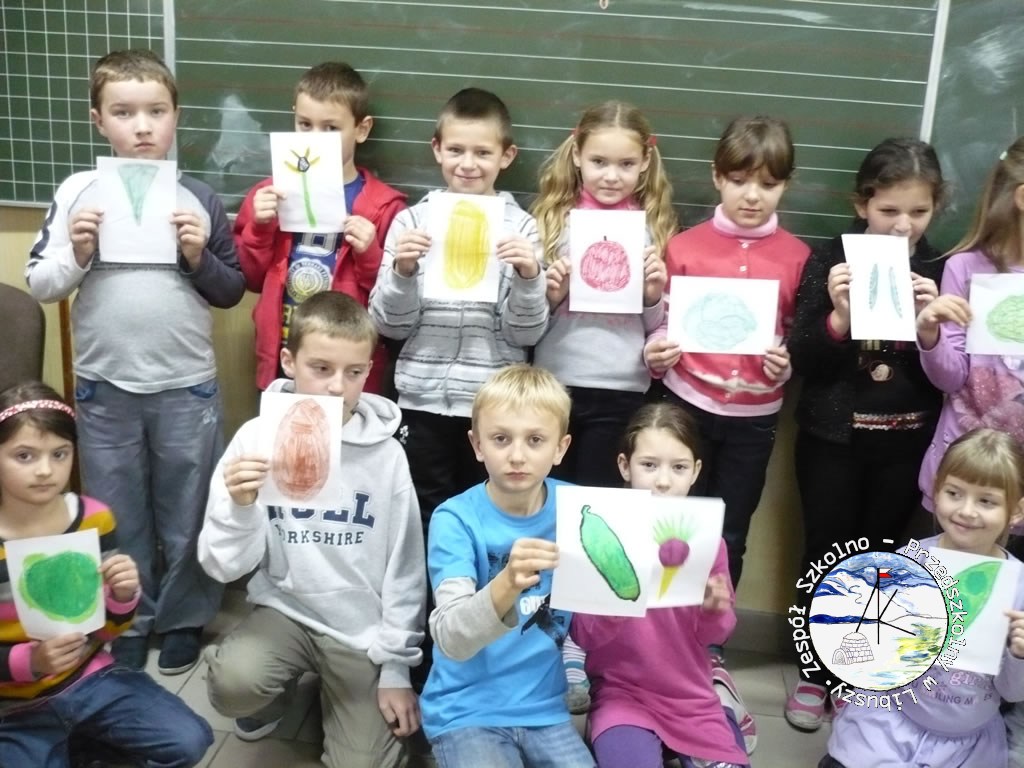 Uczniowie m.in. analizowani piramidę zdrowego żywienia, słuchali i omawiali tekst piosenki „Ogórek wąsaty”, wspólnie zastanawiali się dlaczego należy zawsze przed jedzeniem myć owoce i warzywa. Przeprowadzona została również zabawa „Odgadnij, jakim jesteś owocem lub warzywem”, która wywołała dużo pozytywnych emocji. Na zakończenie zajęć dzieci losowały karteczkę z zagadką. Następnie rysowały odgadnięty owoc lub warzywo.
