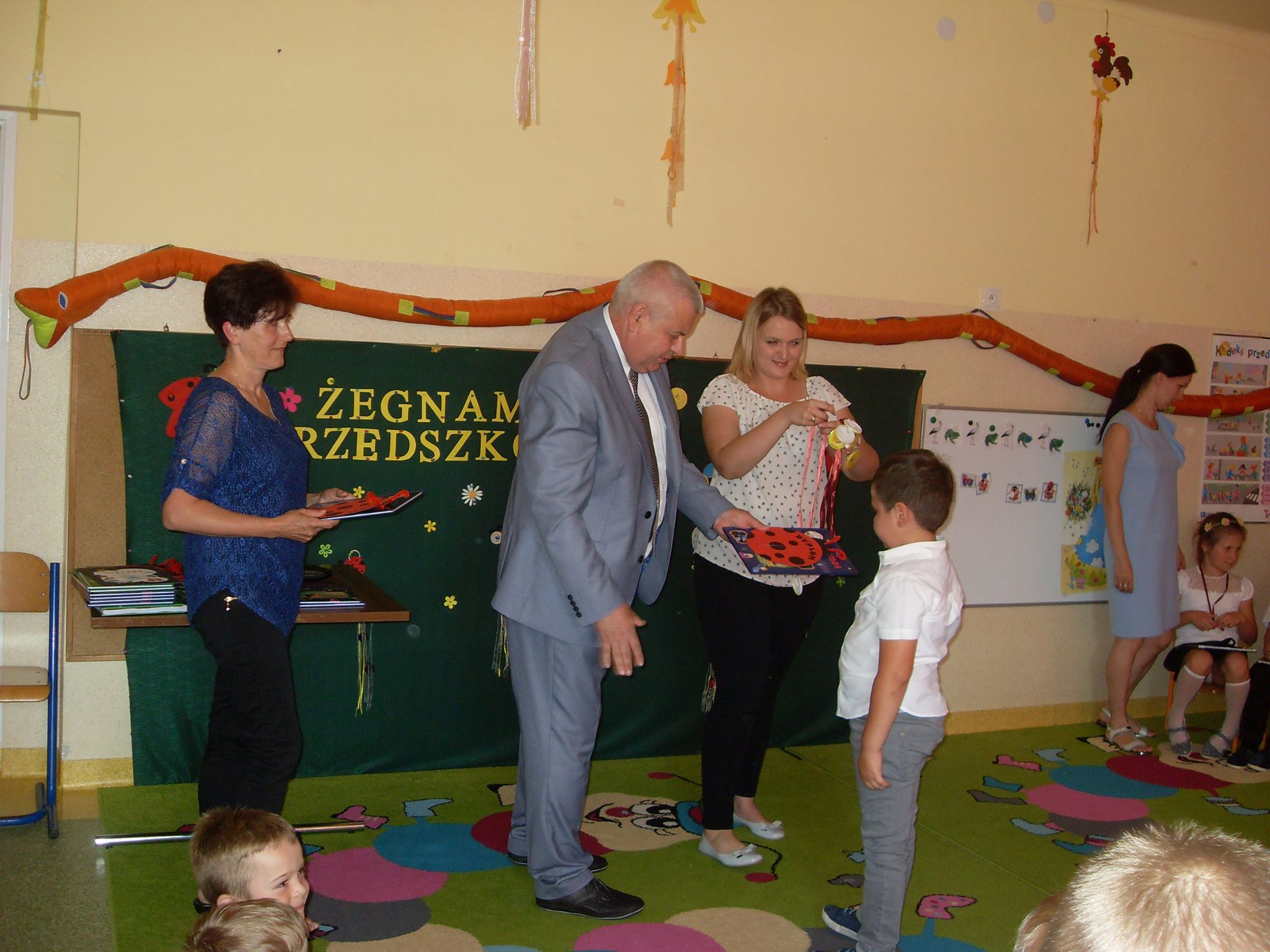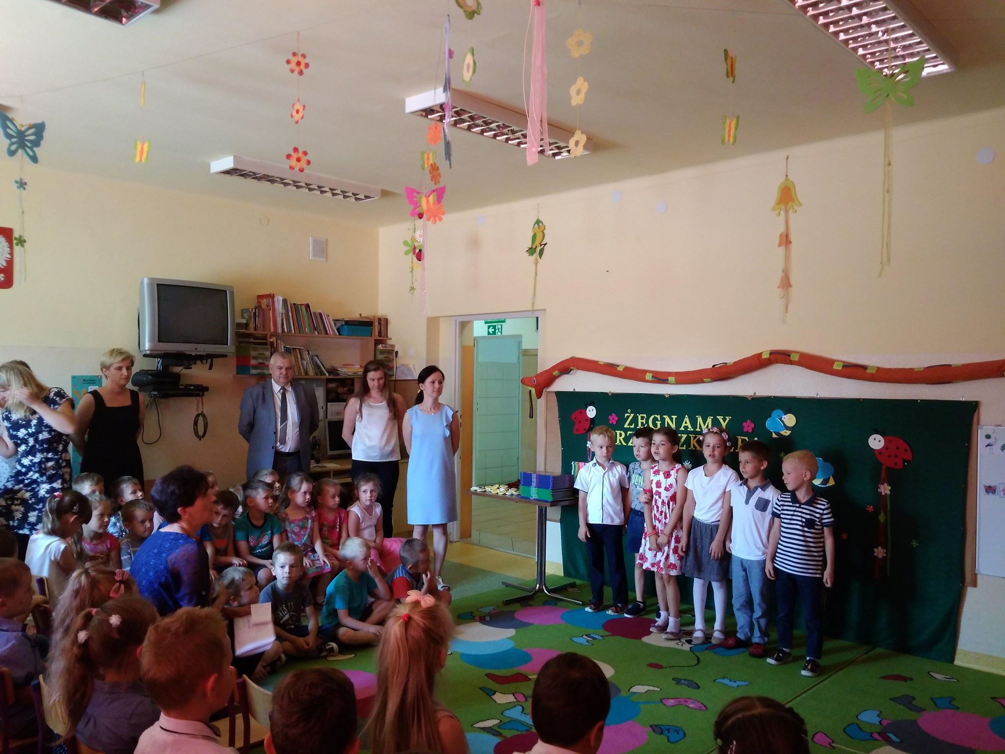 Dnia 20 czerwca br odbyło się uroczyste pożegnanie przedszkolaków z grup „Pszczółki” i „Biedronki”. Dzieci recytowały wiersze i śpiewały piosenki żegnając ukochane przedszkole. Młodsze przedszkolaki, śpiewając piosenkę życzyły starszakom sukcesów w szkole. Pamiątkowe dyplomy, ksiażki i medale wręczył dyrektor szkoły mgr Aleksander Kalisz oraz wychowawczynie grup.