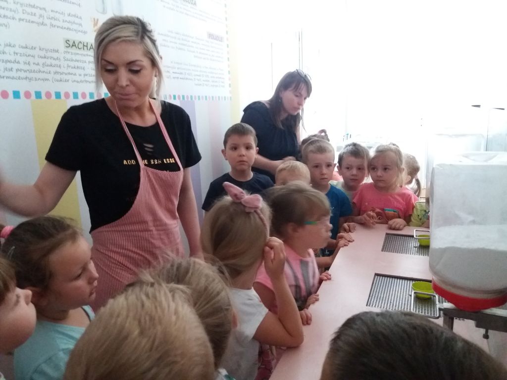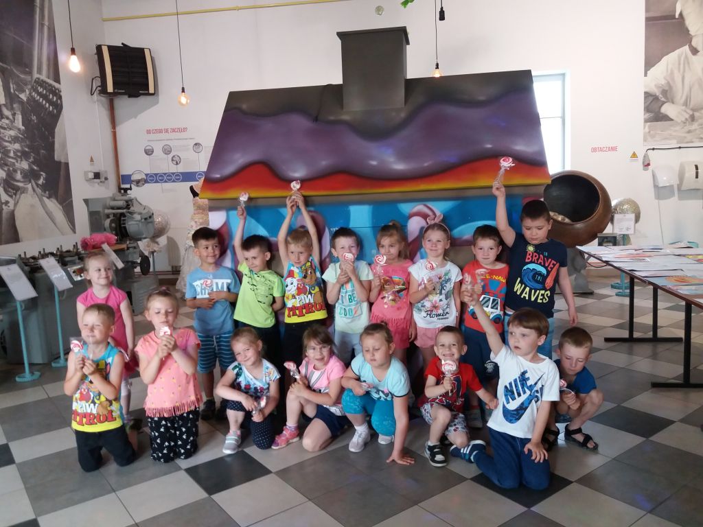 W środę 5 czerwca dzieci z grupy Leśne Duszki pojechały na wycieczkę do Muzeum Lizaka w Jaśle. Zwiedzanie muzeum rozpoczęliśmy od sklepiku, gdzie dzieci mogły zobaczyć różne rodzaje produkowanych słodyczy. Pani przewodnik każdemu chętnemu dziecku na rączce przybiła pamiątkową pieczątkę. Podczas zwiedzania mogliśmy zobaczyć stare maszyny do wyrobu i do formowania oraz do pakowania lizaków.