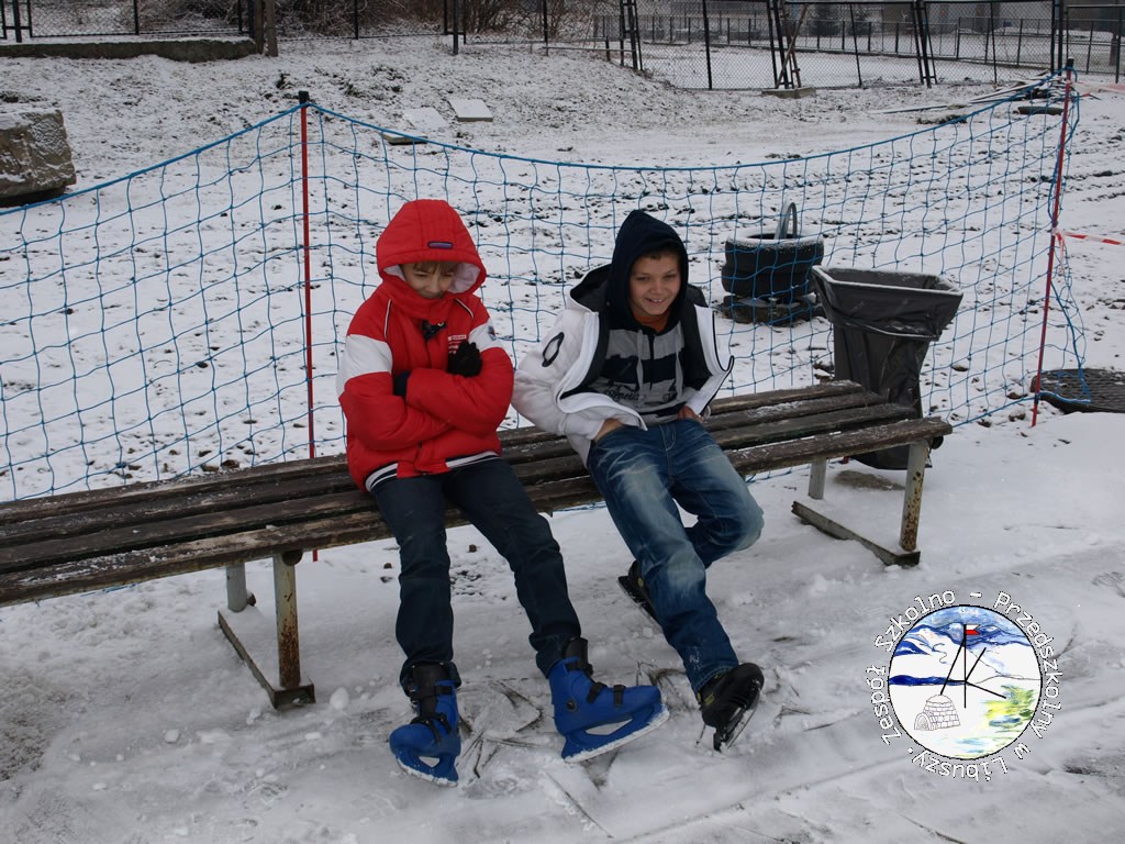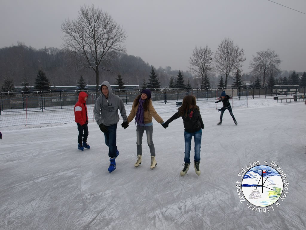 Szkolne Koło Turystyczne zorganizowało przedświąteczny wyjazd na lodowisko dla osób zrzeszonych w kole i innych chętnych dzieci. Ranek przywitał wszystkich śnieżnobiałym puchem, który spadł w ciągu nocy. Choć mróz dawał się we znaki, wszyscy dzielnie jeździli po lodzie. Nie obeszło sie bez wywrotek i poślizgów, na które wszyscy reagowali "salwą" śmiechu, a nabyte siniaki będa przypominać o pobycie na lodowisku przez najbliższe dni. Jeśli aura pozwoli, kolejny wyjazd zorganizujemy przed feriami.