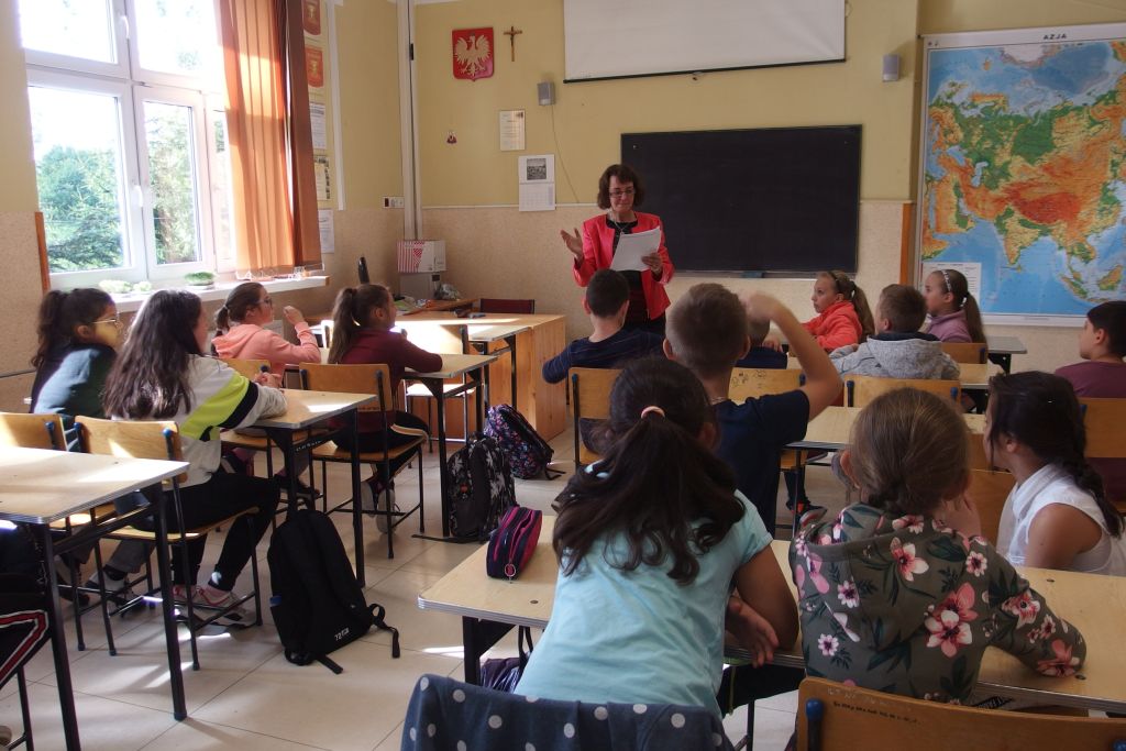 26 września 2019r. podczas zajęć biologii uczniowie klas piątych brali udział w zajęciach przyrodniczych z elementami biblioterapii. Zajęcia poprowadziła pani Małgosia - pracownik Biblioteki Pedagogicznej w Gorlicach. Należy podkreślić, że już od kilku lat nasza szkoła współpracuje z biblioteką. Dotychczas to uczniowie wraz z opiekunami jeździli na zajęcia do Gorlic. Tym razem sama Pani Małgosia zaszczyciła nas swoją obecnością. Klasa 5a zastanawiała się „Czy zwierzęta mają uczucia?”, a 5b tworzyła własną piramidę żywienia. Dzieci aktywnie brały udział w zajęciach. Zadawały wiele pytań i były bardzo chętne do pracy. Zajęcia na pewno długo pozostaną w ich pamięci. Dziękujemy pani Małgosi za ciekawe przedstawienie wybranych tematów. Mamy nadzieję, że wkrótce znowu się spotkamy!!!!