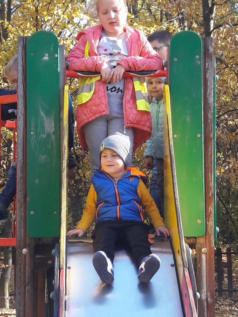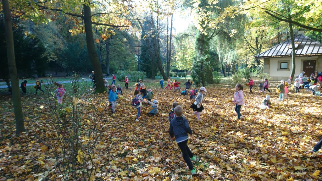 Wykorzystując piękną jesienną pogodę, 16 października br. dzieci z wszystkich grup przedszkolnych z wychowawczyniami udały się na wycieczkę do Miejskiego Parku w Gorlicach. Podczas spacerowania alejkami, obserwowały i podziwiały piękno jesieni. Zbierały „jesienne skarby”, którymi później przyozdobiły kąciki przyrody w salach przedszkolnych. Dużo radości sprawiło im bieganie wśród miękkich i pachnących liści, a także czas spędzony na placu zabaw.