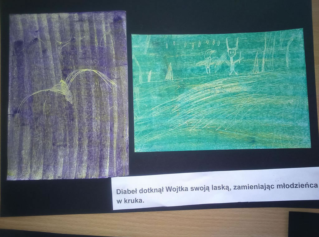 Biedronki w bibliotece: tworzymy ilustracje do opowiadania "Baśń o Róży, kruku Wojtku i kryształowym królestwie"